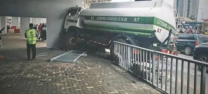Ce dimanche le 26 juillet 2025, un camion-citerne transportant de l’eau en provenance de Cosa a violemment terminé sa course sur l’échangeur de Bambéto.