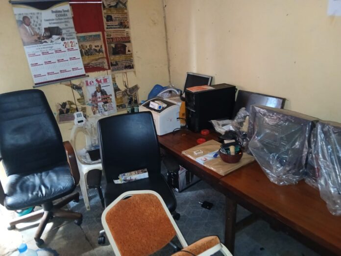 Après leur méfait, les deux hommes ont pris la fuite à bord d’un scooter T-Max, en direction de Kaloum. À peine 24 heures plus tard, dans la nuit du dimanche 12 octobre, c’est la rédaction du journal Le Soir, située à Téménétaye (Kaloum), qui a été attaquée par des hommes armés. Les assaillants ont saccagé plusieurs bureaux, emporté du matériel informatique et des documents confidentiels, avant de disparaître sans laisser de traces.