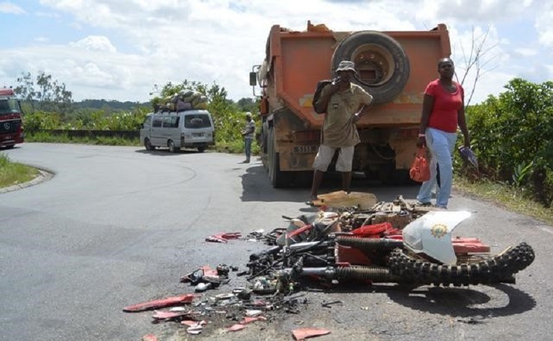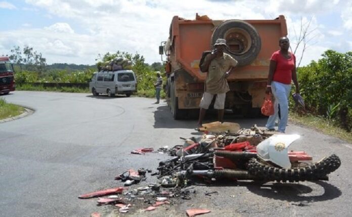 « Je venais de la ville quand l’accident s’est produit. Le motard roulait devant et le camion-remorque était derrière. En voyant le gros porteur approcher, le conducteur de la moto s’est rangé sur le bas-côté pour céder le passage. Malheureusement, le camion l’a percuté. Le motard est tombé dans le fossé, mais sa passagère a été happée par l’arrière du camion et écrasée », a-t-il expliqué, visiblement choqué.