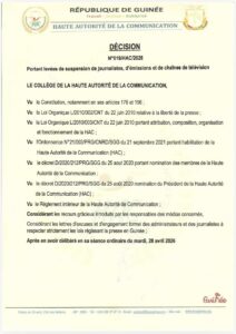 Dans une décision prise ce jeudi 30 avril 2026, la HAC a décidé de lever la suspension :